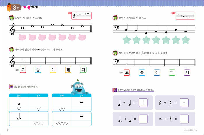 계이름을 체계적으로 학습하는 교재로, 계이름을 처음 배우는 학생들이 사용할 수 있다. 계이름과 더불어 꼭 알아야 할 음악 기초 이론도 수록하여 음악에 대해 체계적으로 학습할 수 있으며, 학습 중간에 ‘쉬어가기’를 넣어 학생들이 지루하지 않게 학습할 수 있다.