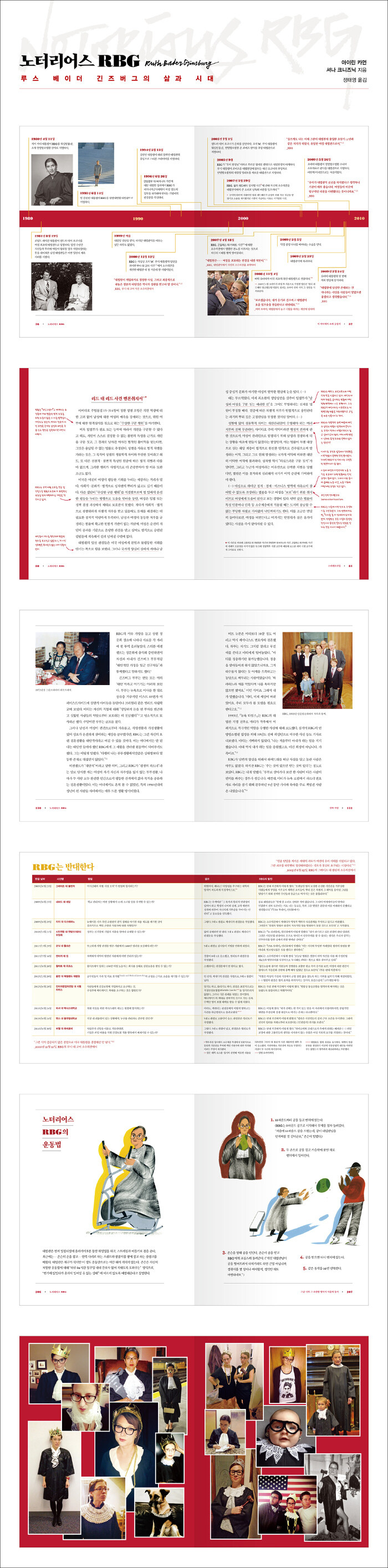 이 정도의 찬사는 시작에 불과했다. 한때 “꽉 막힌 잔소리꾼,” 왜곡된 페미니스트, “꼰대,” 뜨뜻미지근한 급진주의자, 따분한 먹물 같은 경멸조의 별명을 달고 다니던 RBG가 이제는 사랑받는 해시태그로 거듭난 것이다. 긴즈버그의 말 한마디 한마디가 네티즌의 클릭을 달고 다닌다. 급기야 말 한마디 없이도 상대방을 “무력화시킨다” 고 제목을 뽑은 신문도 있다. (…) 수많은 가정에서 RBG를 테마로 핼러윈 코스튬을 만들어 애 어른 할 것 없이 그것을 걸치고 기념사진을 찍는다. 2015년 봄, RBG는 똑똑한 페미니스트의 대명사로 통하기 시작했다. 말 좀 하는 사람치고 RBG를 들먹이지 않는 이가 없었다. (…) 이 모든 현상은 한마디로 전례가 없는 일대 사건이었다. 아무리 존경받는 판사라고 해도 대중의 상상력을 이런 식으로 사로잡은 사람은 없었다.