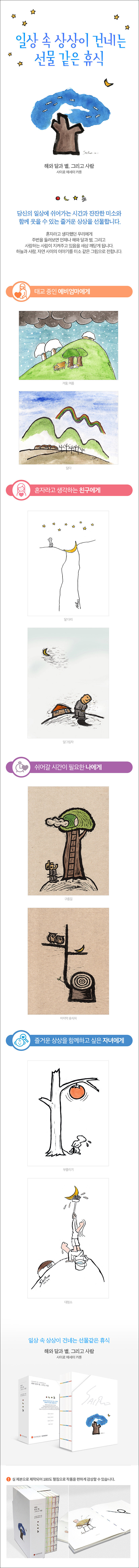 어른을 위한 에세이 카툰. 혼자인 것 같아 외로운 우리에게, 주변을 둘러보면 언제나 해와 달과 별, 그리고 사랑하는 사람이 지켜주고 있음을 새삼 깨닫게 된다. 하늘과 사람, 자연 사이의 이야기를 미소 같은 그림으로 엮어 네 권의 책으로 전한다.