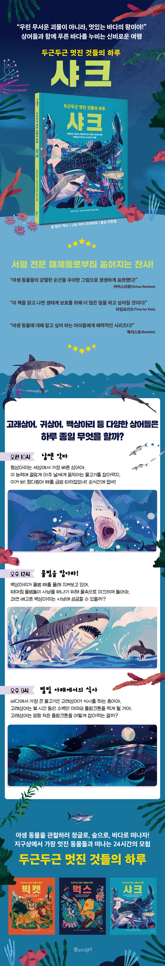 지구상에서 가장 멋진 동물들과 떠나는 24시간의 모험. 생동감 넘치는 그림을 따라 야생 동물들의 하루를 관찰하다 보면 24시간 다큐멘터리를 보는 듯한 생생함을 느낄 수 있다. 더불어 생태계와 야생 동물 보호의 중요성에 대해서도 배울 수 있는 좋은 기회가 될 것이다.