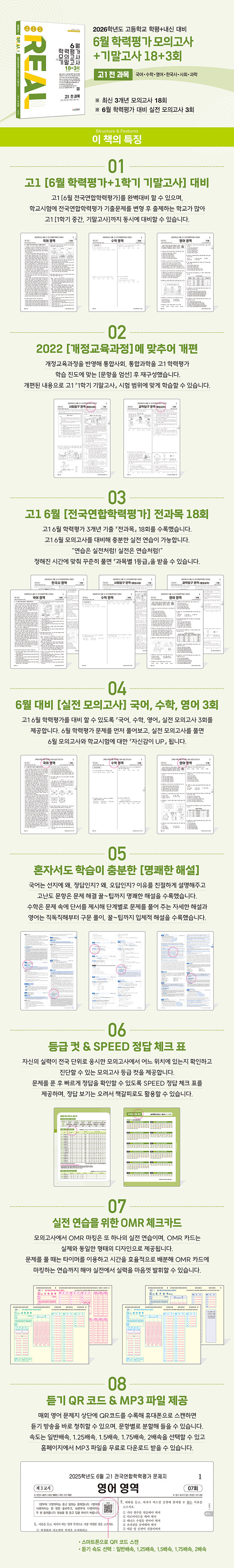 · 제목 : 리얼 오리지널 6월 학력평가 모의고사 + 기말고사 고1 전과목 (2026년) (2022 개정 교육과정, 국어, 수학, 영어, 한국사, 사회, 과학)
