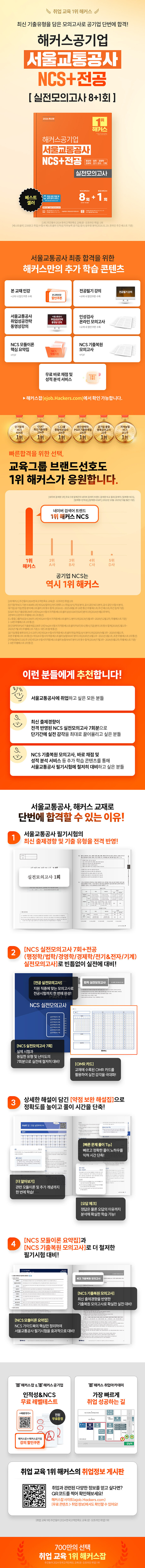 · 제목 : 2026 해커스공기업 서울교통공사 NCS+전공 실전모의고사 8+1회 (행정학·법학·경영학·경제학·전기·전자·기계 | 본 교재 인강 | 서울교통공사 취업성공전략 강의 | 무료 바로 채점 및 성적 분석 서비스)