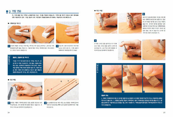 가죽 카빙을 전문으로 하는 공방에서부터 가죽 공예 독학자에 이르기까지 쉽게 배울 수 있는 가죽 카빙의 완벽 가이드북이다. 가죽 카빙이란 가죽 위에 각인을 이용하여 요철을 만들고 입체감을 주어 특정 모양과 무늬를 가죽에 새겨 넣는 가죽 공예 기법 중의 하나이다.