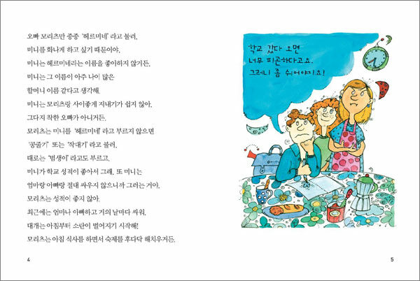 안데르센 상, 린드그렌 상 수상 작가 크리스티네 뇌스틀링거가 또래 아이들 보다 키가 훨씬 크고, 두 살 터울인 오빠 모리츠보다도 결코 작지 않은 주인공 미니의 눈으로 바라 본 유쾌한 생활 이야기를 들려준다.