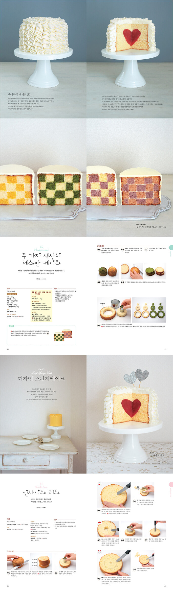 일반 케이크와 겉모습은 같지만 단면을 자르면 하트, 곰 모양의 일러스트와 캔디나 과일 등이 숨어 있어, 만드는 재미, 먹는 재미, 더 나아가 보는 재미가 있는 숨바꼭질 케이크 레시피 모음이다. 특별한 날에 더 특별한 케이크를 만들어 볼 수 있다.