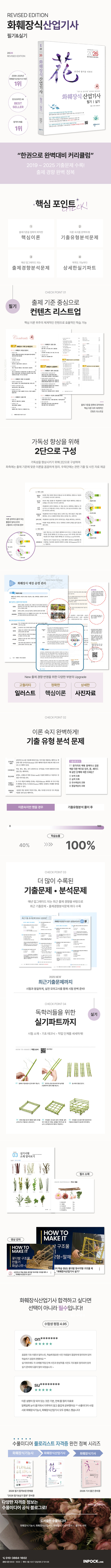 더불어 국가기술자격인 화훼장식산업기사에 대한 전문성과 자격의 내용에 대한 관심이 높아지면서 이를 뒷받침해줄 교재에 대한 필요성 또한 함께 떠오르게 되었습니다. 이에 본 저자들은 자격을 취득하고자 하는 분들에게 도움이 되고자 체계적이고 전문적인 화훼장식산업기사 교재를 출간하게 되었습니다.