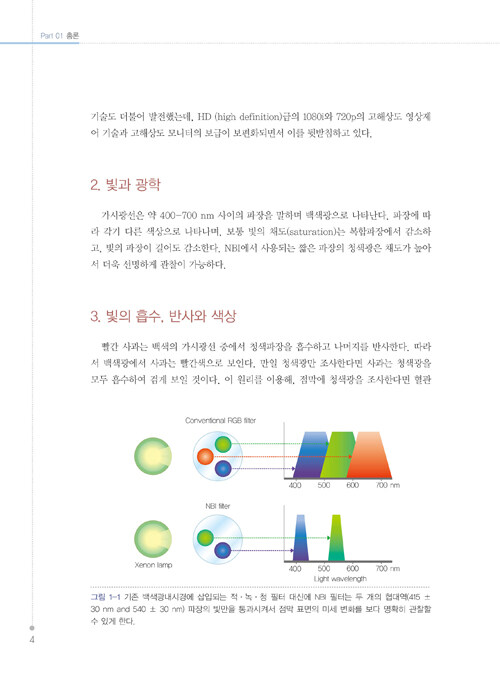 이 책은 NBI 원리에서부터 각 장기별, 질환별 특성을 쉽게 공부할 수 있도록 구성했습니다. 최신 연구 결과를 간단히 요약하였고, 많은 증례를 분석하여 특징적인 사진만을 엄선하여 이해를 돕도록 노력하였습니다. 이 책이 내시경에 처음 입문하는 사람부터 내시경 전문가에 이르기까지 최신 내시경의 발전 동향을 살피고, 정확한 진단과 올바른 치료 방향 설정에 도움이 되었으면 합니다. 이 책을 출간하기까지 물심양면으로 도와주신 대한소화기내시경학회 김창덕 이사장님, 류종선 회장님께 진심으로 감사를 드리며, 훌륭한 원고와 사진을 제공해주신 집필진과 장재영 교수님을 비롯한 내시경기기기술연구회 위원들, 대한의학서적 관계자들에게 감사의 말을 전합니다.