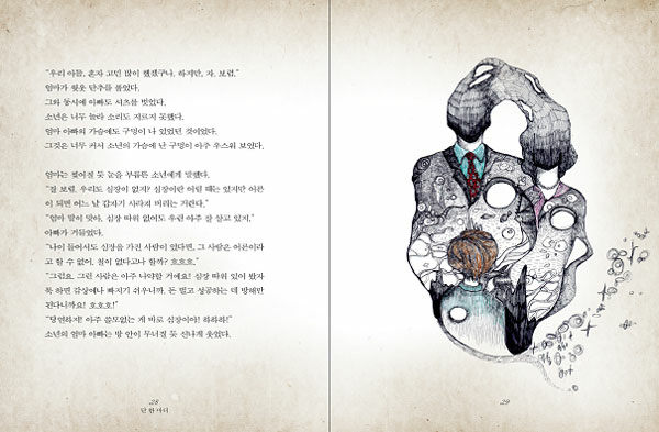 소년은 겁먹어서 떨리는 목소리로 조금은 진정된 엄마 아빠에게 물었다.