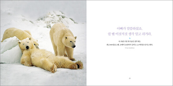 아버지의 헌신과 다정함에 바치는 감동적인 책. 이 책은 처음 아버지가 되려는 사람을 위해서든 아니면 그저 아버지에게 사랑을 표현하기 위해서든 가슴으로 전하는 값진 선물이다. 내셔널지오그래픽 세계 최고의 야생 사진들을 통해 세상의 아빠들의 힘과 따뜻함을 즐겁고 아름답게 표현하고 있다.