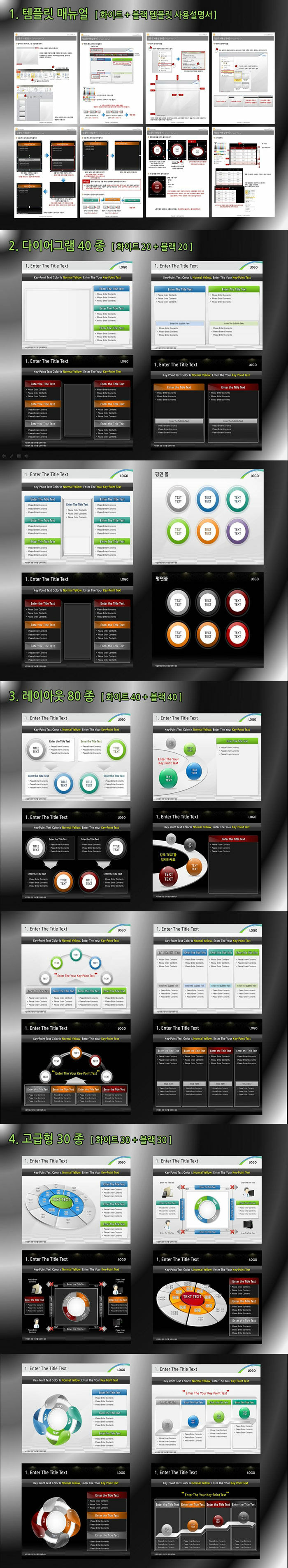 회사소개서, 제품소개서, 대외홍보 및 각종 제안서 작성 가능한 프레젠테이션 레이아웃 템플릿 180종이 담긴 CD-ROM. White, Black 마스터 기반의 레이아웃 템플릿 종합 Package로 더욱 다양한 제안서 제작에 적합하도록 구성하였다.