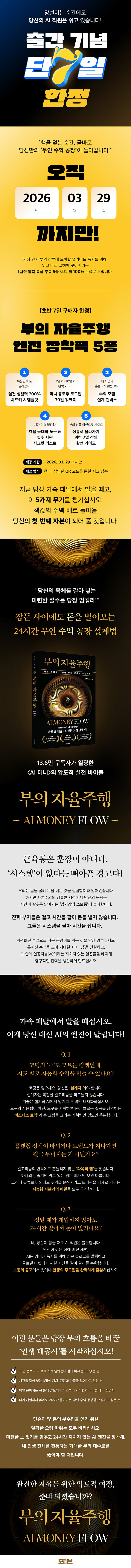 노력으로 버티는 시대는 끝났다. 대신 24시간 쉬지 않는 AI 엔진을 장착하고, 한 번 구축하면 계속해서 수익을 만들어내는 ‘머니 플로우’를 만들어야 한다. 이 책은 그 흐름을 만드는 방법을 가장 구체적으로 보여주는 안내서다. 지금 이 순간에도 가만히 있으면 하류로 떠내려간다.