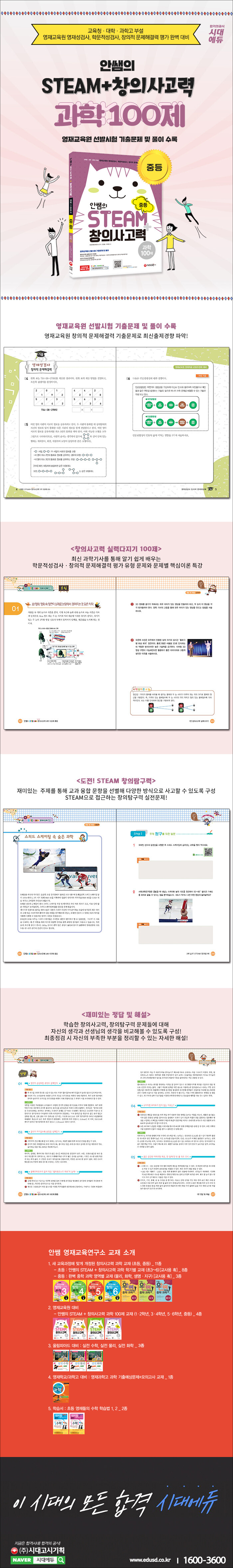 · 제목 : 안쌤의 STEAM+ 창의사고력 과학 100제 중등 (교육청, 대학, 과학고 부설 영재교육원 영재성검사, 학문적성검사, 창의적 문제해결력 평가 완벽 대비)