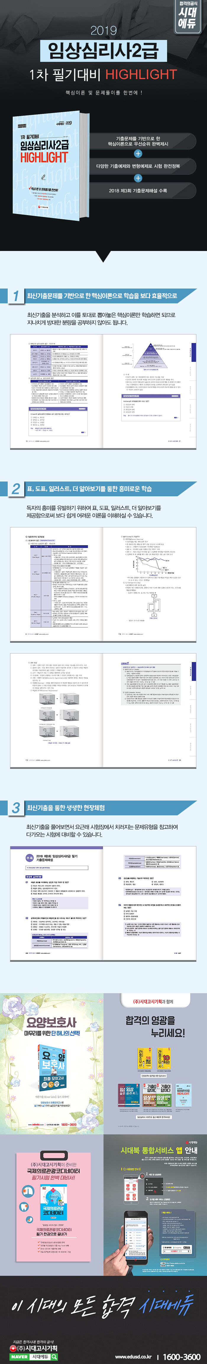 · 제목 : 2019 임상심리사 2급 1차 필기대비 Highlight (최신기출문제를 기반으로 한 핵심이론 및 최신기출해설 수록)