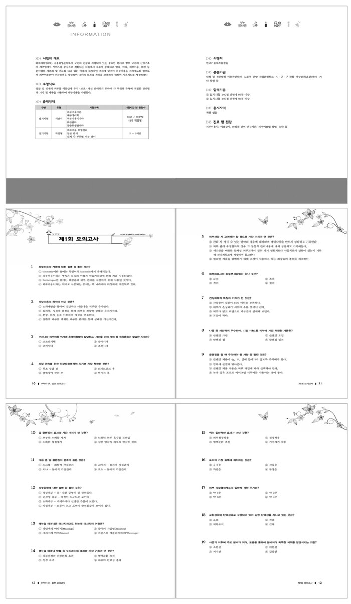 피부미용이론, 해부생리학, 피부미용기기학, 화장품학, 공중위생관리학 과목을 수록하였다. 실전모의고사 10회 및 매 문제 상세한 해설을 실었다.