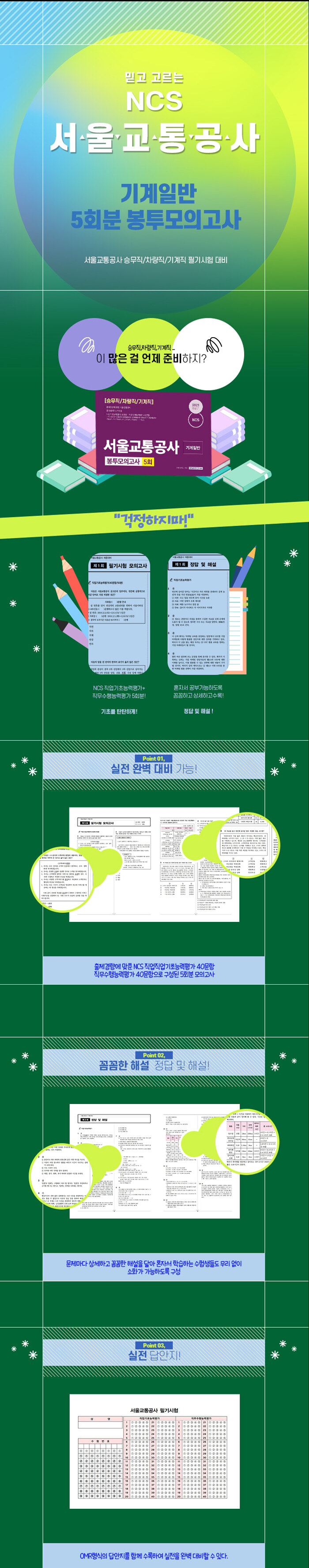 · 제목 : 2021 하반기 NCS 서울교통공사 기계일반 5회분 봉투모의고사 (NCS직업기초능력평가 + 기계일반 5회분 봉투모의고사)