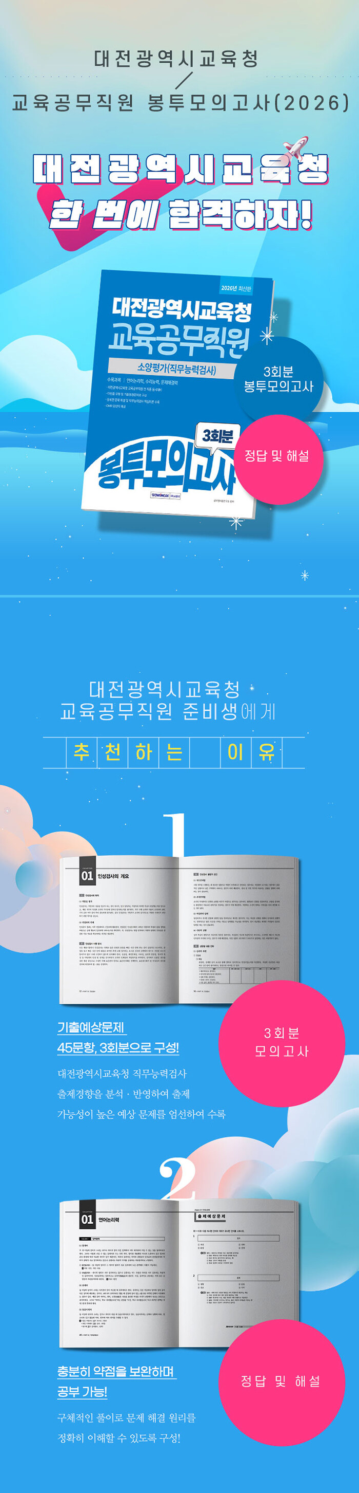 · 제목 : 2026 대전광역시교육청 교육공무직원 3회분 봉투모의고사 (3회분 모의고사 + 정답 및 해설 + 소양평가 대비를 위한 기초이론 + 답안지, 개정4판)