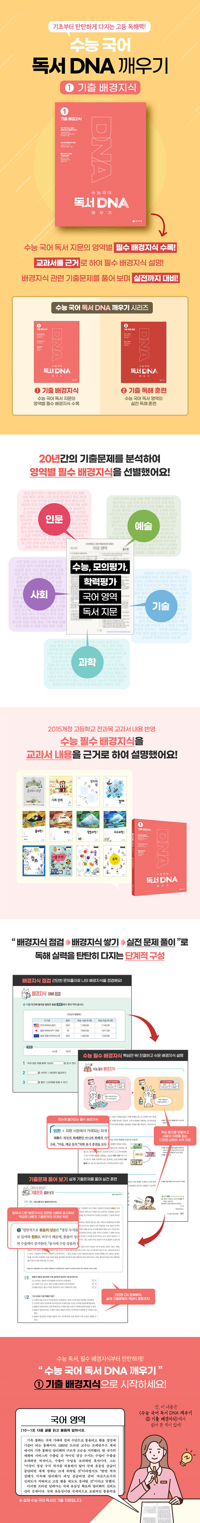 수능 국어 영역의 독서 지문을 독해하는 데 필요한 필수 배경지식을 학습하고, 관련 기출문제를 풀어 볼 수 있는 독해 훈련서이다. 공통 교육과정과 기출문제를 바탕으로 하여 인문, 사회, 과학, 기술, 예술 영역의 지문을 읽을 때 필요한 배경지식을 다양한 삽화와 함께 설명했다.