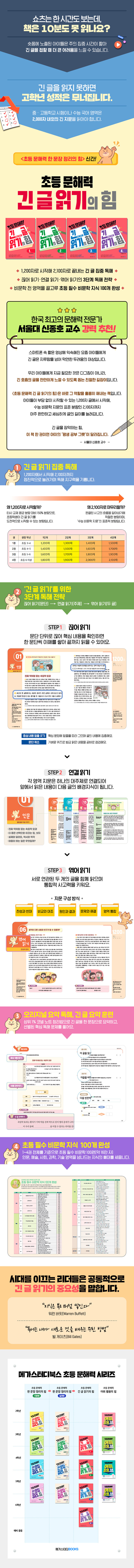 여기에 '엮어 읽기'와 '실전 읽기'까지 더하면, 1~4권 전체를 기준으로 초등 필수 비문학 100편, 약 16만 자 이상을 읽게 되는 셈입니다. 〈긴 글 읽기의 힘〉으로 상위 1% 문해력과 세상을 읽는 힘까지 키워 보세요.