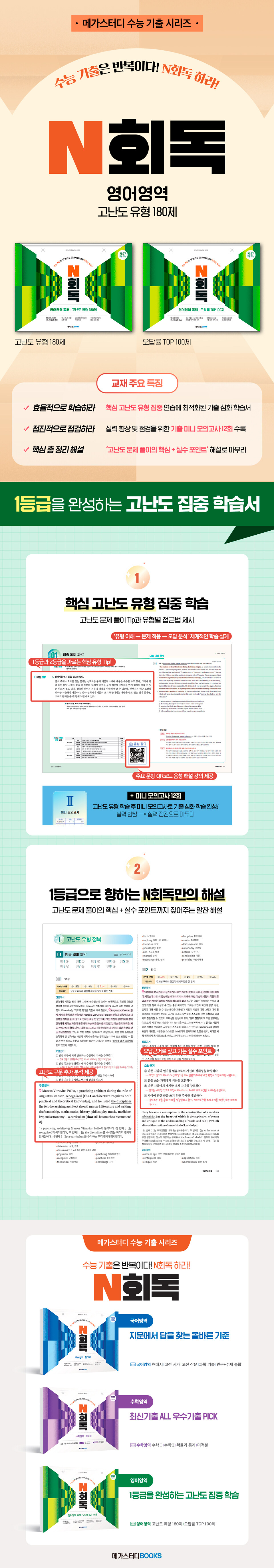 · 제목 : 수능기출 N회독 영어영역 독해 고난도 유형 180제 (2026년) (2027 수능 대비)