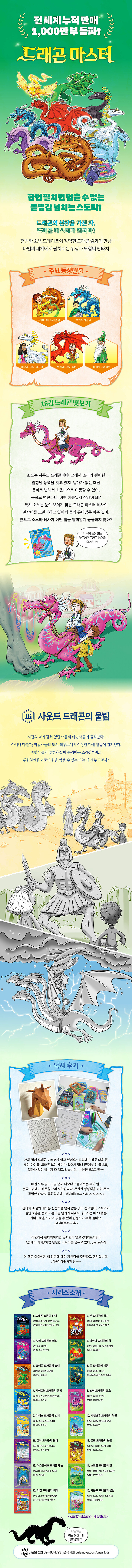 출간 즉시 아마존 베스트셀러에 등극하는 초대형 판타지! 『드래곤 마스터』 시리즈가 드디어 한국어판으로 출간되었다. 해외 독자들의 사랑을 듬뿍 받는 판타지 동화로, 이제 한국 독자들도 함께 즐길 수 있게 되었다. 2014년 첫 출간을 시작으로, 시리즈를 이어 오며 꾸준한 인기를 유지할 수 있는 이유는 쉬운 문장과 속도감 있는 전개, 흡입력 넘치는 스토리 덕분이다. 이를 증명하듯이 아이들의 열광뿐만 아니라, 미국 초등학교 선생님들이 학생들의 독서 습관을 길러 주기 위해 강력 추천하는 책으로, 재미와 학습을 모두 잡을 수 있는 매력적인 작품이다.