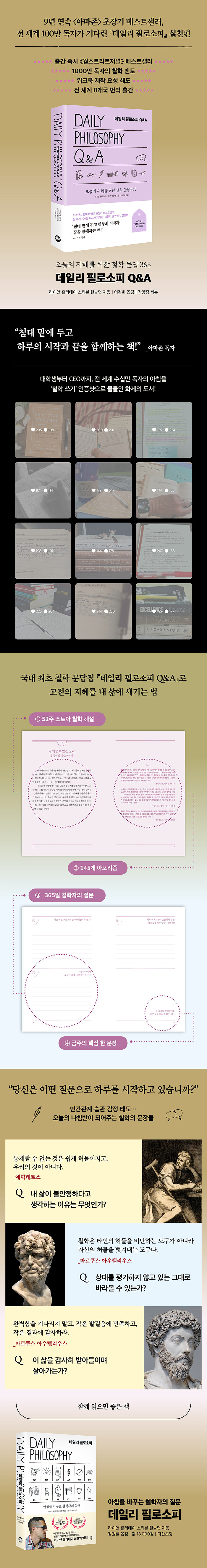 책에서 소개한 스토아 철학의 가르침을 따라가다 보면, 현대의 스토아 철학자 피에르 아도가 했던 말처럼 매일 아침 이렇게 자문하게 될 것이다. “오늘 내 행동을 이끌고 영감을 줄 원칙은 무엇인가?” 이 책은 어느 날이든 바로 시작할 수 있다. 책이 끝날 때까지 매일의 성찰을 이어나가면 된다.
