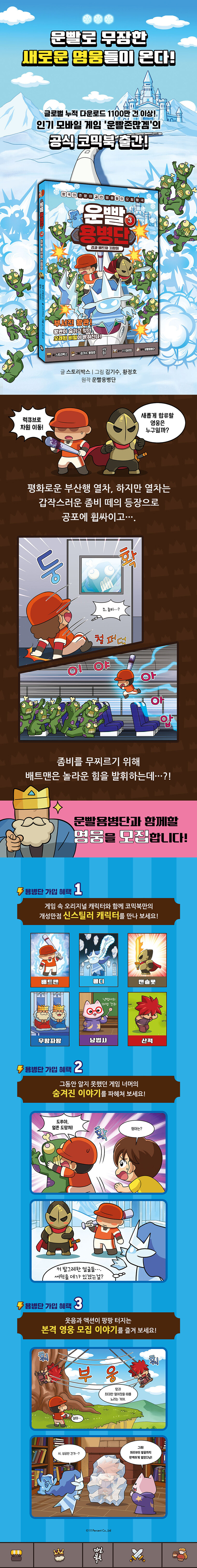 출시된 이래 선풍적인 인기를 끌며, 글로벌 누적 다운로드 1100만 건 이상을 기록한 모바일 게임 ‘운빨존많겜’. ‘운빨존많겜’ 세계관을 바탕으로, 게임 속 영웅들의 숨겨진 이야기와 비밀이 하나씩 밝혀지는 운빨용병단 코믹북이다.