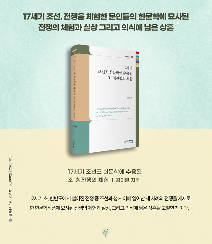 필자는 이 시기 역사와 각각의 전쟁을 다룬 문학작품에 관심을 가진 지 상당한 시간이 흘렀고, 이 분야를 주제로 하여 박사논문을 집필한 바 있다. 이를 바탕으로 이 시기 문학에 관한 소개서에 해당하는 작은 저서를 기획한 바였다. 그러나 조-청전쟁을 제재로 한 작품으로 한국에 남아 있는 텍스트가 너무나 방대하여 이 책의 연구 대상을 어디까지로 할 것인가를 결정하기 어려웠다.