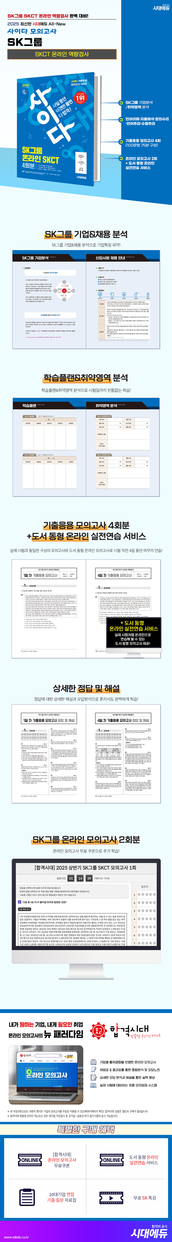 · 제목 : 2025 최신판 시대에듀 All-New 사이다 모의고사 SK그룹 SKCT 온라인 역량검사 (기출응용 모의고사 4회 + 무료SK특강)