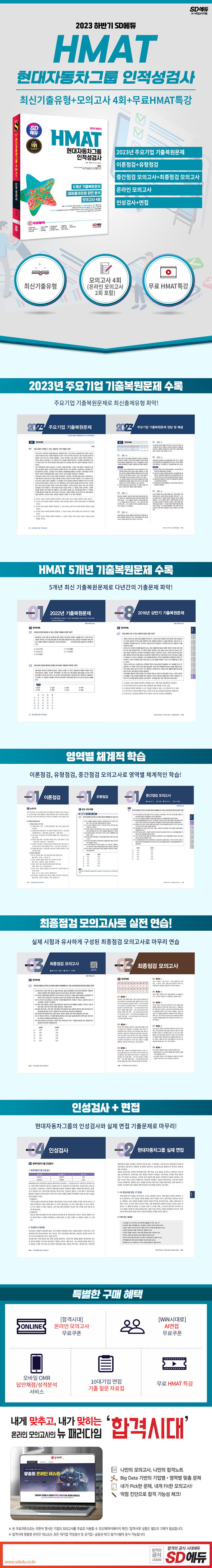 · 제목 : 2023 하반기 SD에듀 HMAT 현대자동차그룹 인적성검사 최신기출유형 + 모의고사 4회 + 무료HMAT (2023년 주요기업 기출복원문제 수록)
