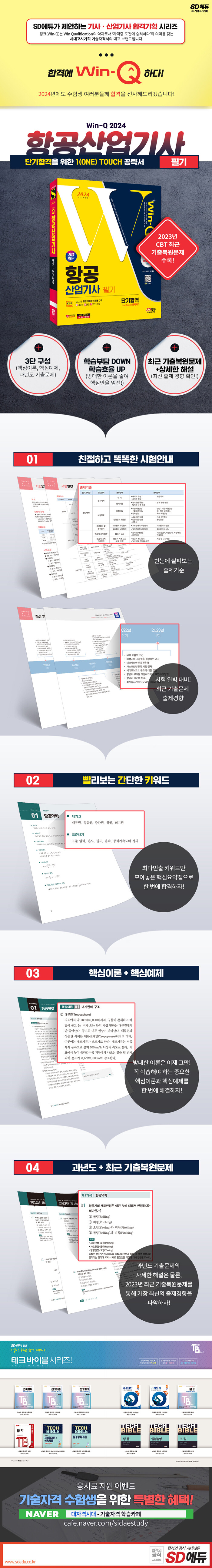 · 제목 : 2024 시대에듀 Win-Q 항공산업기사 필기 단기합격 (2023년 최근 기출복원문제 수록! 빨리보는 간단한 키워드 수록!)