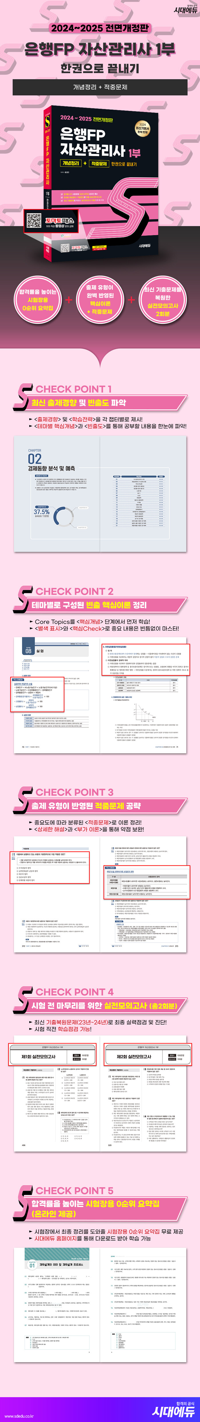 · 제목 : 2024~2025 시대에듀 은행FP 자산관리사 1부 [개념정리+적중문제] 한권으로 끝내기 (최신 출제경향 및 2024년 기본서 완벽 반영, 시험장용 0순위 요약집 온라인 제공, 실전모의고사 2회분 수록, 토마토패스 저자 직강 동영상 강의 교재)