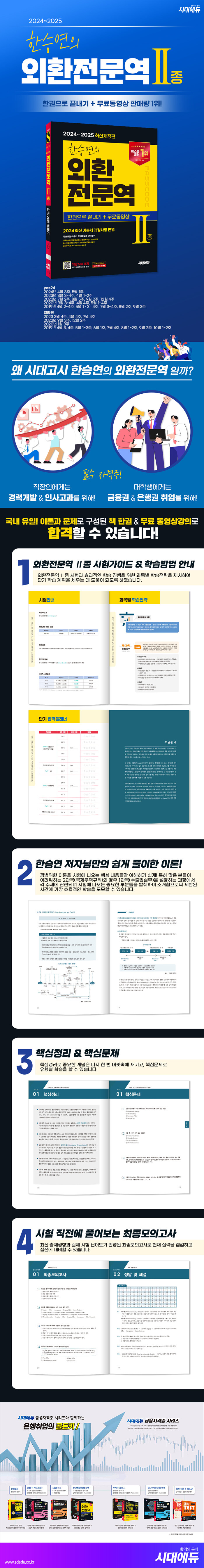 · 제목 : 2024~2025 한승연의 외환전문역 Ⅱ종 한권으로 끝내기 + 무료동영상 (국내유일 핵심이론과 문제로 합격률을 높여주는 완벽 수험서 / 동영상강의 무료제공!)