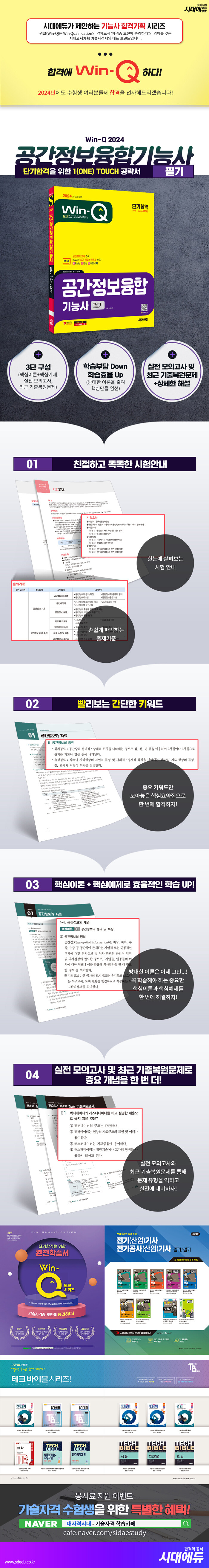 · 제목 : 2024 시대에듀 Win-Q 공간정보융합기능사 필기 단기합격 (빨간키 수록! 실전 모의고사 및 최근 기출복원문제 수록!)