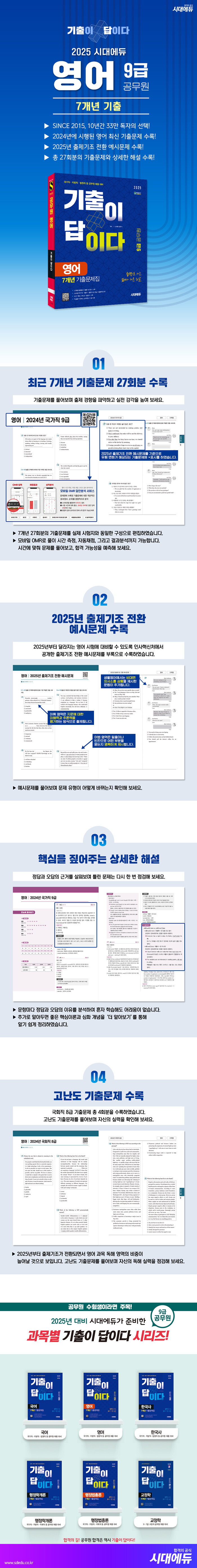 · 제목 : 2025 시대에듀 기출이 답이다 9급 공무원 영어 7개년 기출문제집 (합격으로 가는 깊이가 다른 해설)