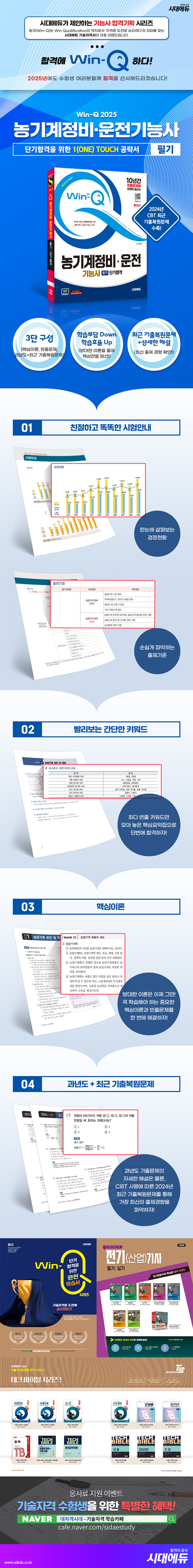 · 제목 : 2025 시대에듀 Win-Q 농기계정비·운전기능사 필기 단기합격 (최근 기출복원문제 수록! 핵심요약집 빨간키 수록!)