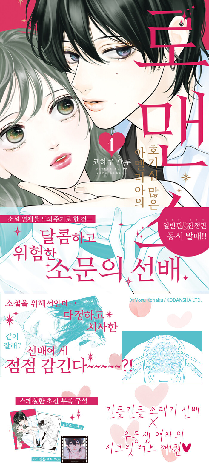 · 제목 : 아멜리아의 호기심 많은 로맨스 1 (한정판) (아크릴 스탠드 2종, 종이 코스터 2종, 판 스티커, 일러스트 카드, PET 필름 포토 카드, 루나 코믹스)