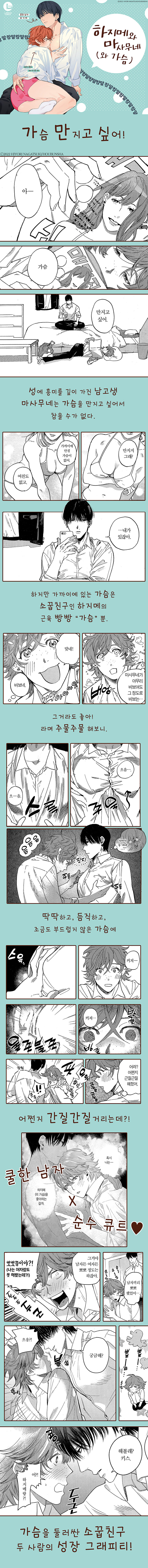 성에 흥미가 많은 남고생 마사무네는 가슴을 만지고 싶어 참을 수가 없다. 하지만 가까이에 있는 가슴은 소꿉친구인 하지메의 근육 빵빵 ‘가슴’뿐. 그거라도 좋아! 라며 주물주물 해보니 딱딱하고, 듬직하고, 조금도 부드럽지 않은 가슴에 어쩐지 간질간질거리는데.