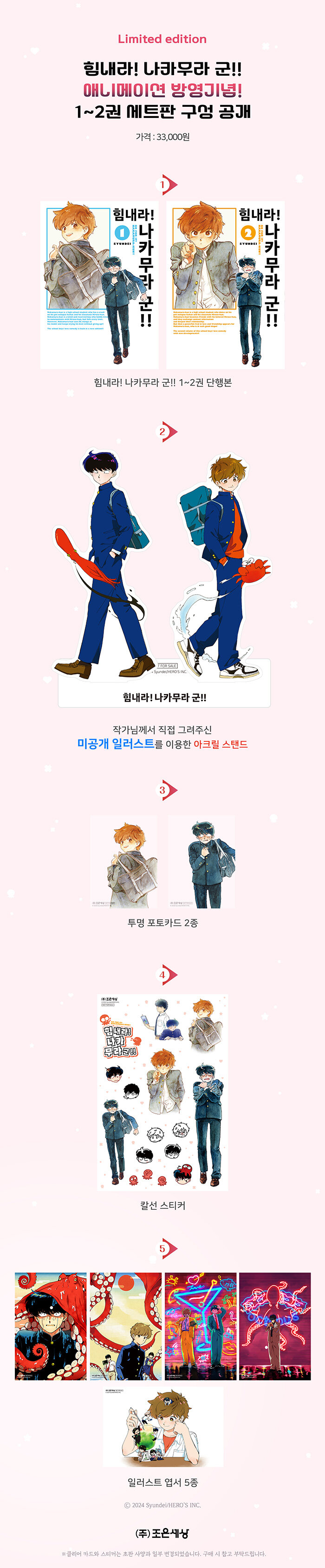 · 제목 : 힘내라! 나카무라 군!! 1~2 세트 - 전2권 (투명 클리어 카드 2종, 일러스트 카드 5종, 칼선 스티커 1종, 아크릴 스탠드 1종)