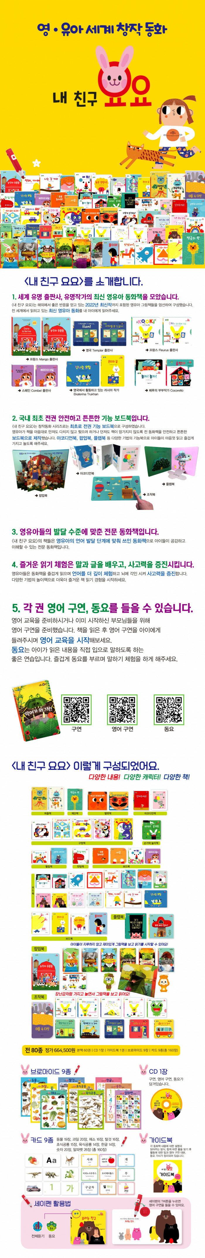 · 제목 : 내 친구 요요 80종 세트 (본책 60권 + CD 1장 + 가이드북 1권 + 브로마이드 9장 + 카드 9종) (세이펜 적용, 세이펜 미포함)