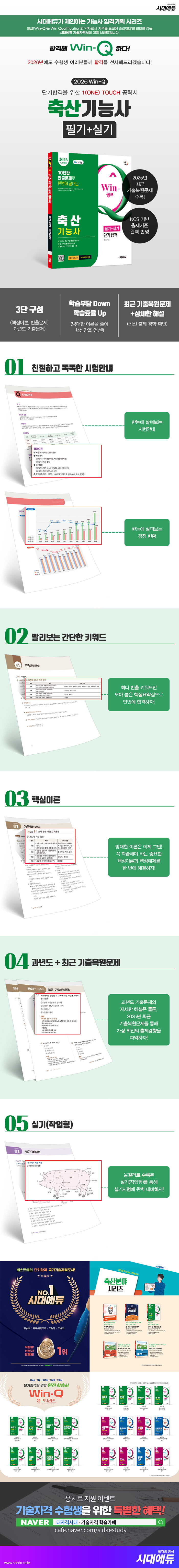 · 제목 : 2026 시대에듀 Win-Q 축산기능사 필기 + 실기 단기합격 (2025년 최근 기출복원문제 수록! 실기(작업형) 올컬러 및 핵심요약집 빨간키 수록!)