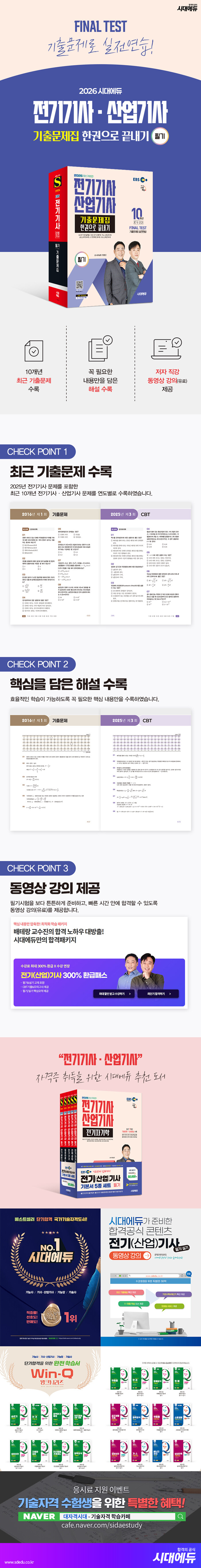 · 제목 : 2026 시대에듀 전기기사ㆍ산업기사 필기 기출문제집 한권으로 끝내기 (최신 출제경향 반영, 최근 10개년 기출문제 및 상세 해설 수록, 동영상 강의 제공(유료))