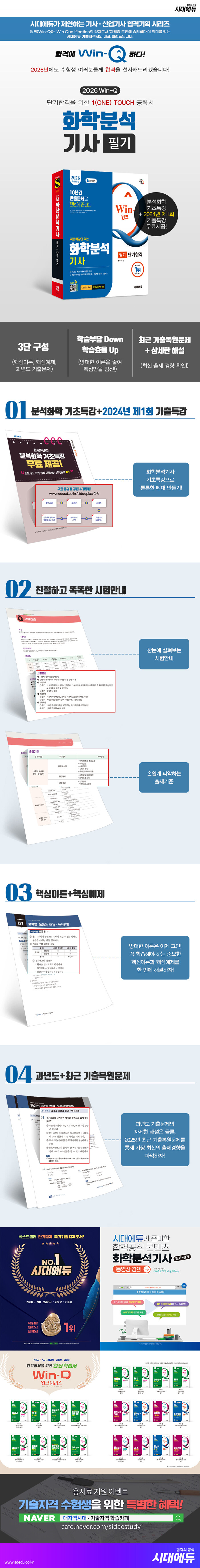 · 제목 : 2026 시대에듀 무료 특강이 있는 Win-Q 화학분석기사 필기 단기합격 (CBT 모의고사 무료쿠폰 제공! 2025년 최근 기출복원문제 수록!)