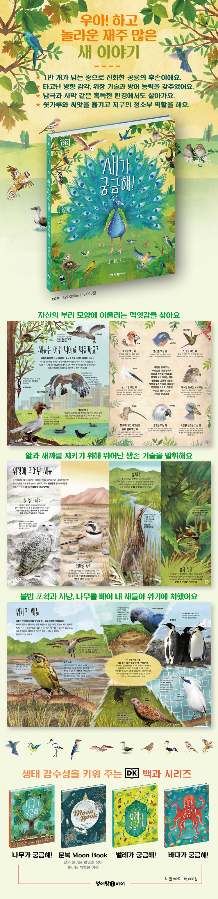 새는 지구에 인간이 처음 생겨났을 때부터 인류의 역사와 문화에 빠짐없이 등장해온 인간과 매우 가까운 동물이다. 이 책에서는 도시와 야생에서 인간과 더불어 살아가며 살기 좋은 지구를 만들어주는 새들의 종류와 다양한 능력을 알아본다.