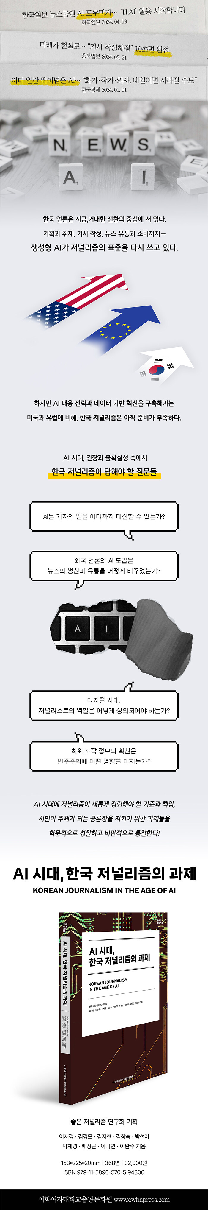 이 책은 단순한 기술 담론을 넘어, AI 시대에 저널리즘이 어떤 기준과 책임을 재정립해야 하는지, 민주적 공론장을 지켜내기 위해 무엇을 준비해야 하는지에 대한 학술적 통찰과 현실적 해법을 제시한다. 급격한 전환의 시대를 살아가는 언론 종사자와 정책 결정자, 그리고 뉴스의 미래를 고민하는 독자라면 누구든 이 책을 통해 기술 변화의 속도 너머에서 한국 언론이 지금 무엇을 준비하고 무엇을 다시 상상해야 하는지에 대한 현실적이면서도 도전적인 통찰을 만나게 될 것이다.