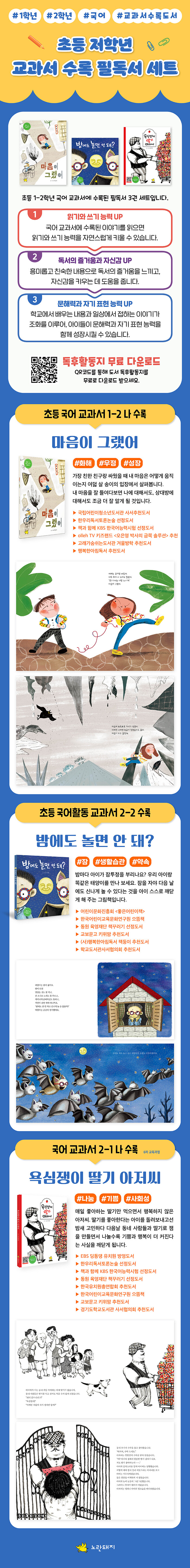 초등 1-2학년 국어 교과서에 수록된 필독서 3권 세트다. 국어 교과서에 수록된 이야기를 읽으면 읽기와 쓰기 능력을 자연스럽게 키울 수 있다. 또한 흥미롭고 친숙한 내용으로 독서의 즐거움을 느끼고 자신감을 키우는데 도움을 준다. 학교에서 배우는 내용과 일상에서 접하는 이야기가 조화를 이루어, 문해력과 자기 표현 능력을 함꼐 성장시킬 수 있다.