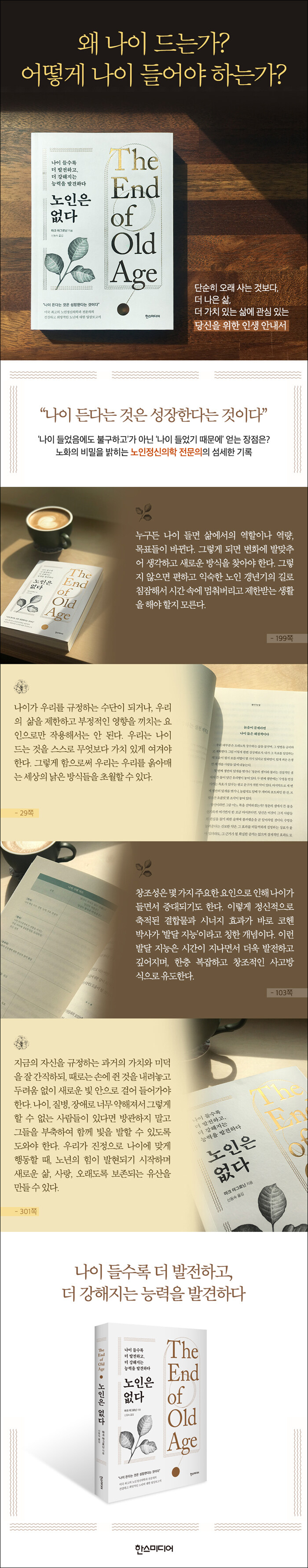 ‘우리는 왜 나이 들어야 하는가’라는 질문에 대한 답을 찾기 위해서는 나이 듦의 이로움을 잔뜩 가리는 구름을 치워야 했다. 물론 이 사실을 모든 사람에게 납득시키기는 힘들다. 특정 시점 이후로는 나이 드는 데 따른 장점은 전혀 없다고 믿는 사람이 여전히 있을 테니 말이다. 다만 두려운 것은 노년의 삶을 잘 유지하고 풍요롭게 하는 문제에 완전히 무관심하다 보면, 행복하고, 편안하고, 독립적인 능력이 있을 때에만 삶이 의미 있다는 결론을 내리게 된다.