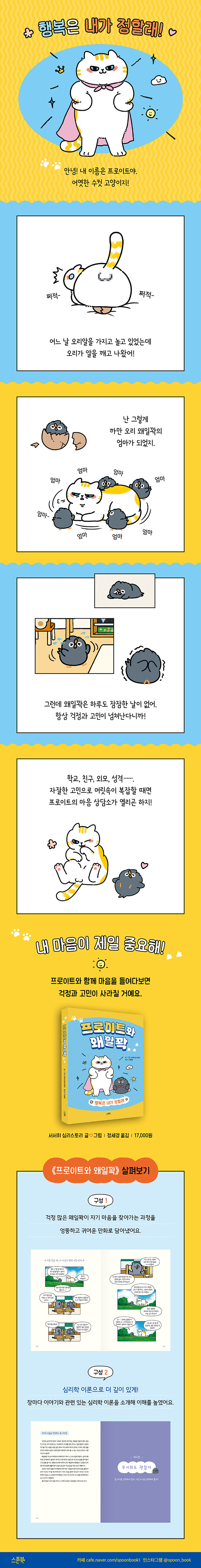 걱정과 고민이 많은 꼬마 오리 왜일꽉을 보면서 청소년 독자들은 ‘나만 이런 게 아니구나’ 하는 안도감을 느낄 수 있어요. 고양이 엄마 프로이트가 위로해 주는 모습을 보면서 자신의 마음을 천천히 들여다보게 됩니다. 왜일꽉과 비슷한 걱정을 안고 있는 독자들은 물론, 귀여운 캐릭터의 매력에 이끌려 페이지를 넘기던 독자들 역시 자연스러운 미소를 짓게 된답니다.