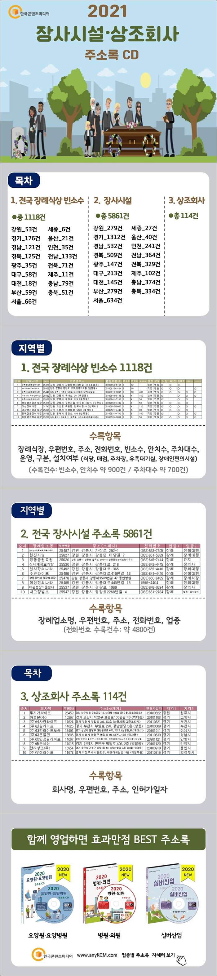 · 제목 : [CD] 2021 장사시설·상조회사 주소록 - CD-ROM 1장 (묘지, 납골당, 장례대행, 장례식장, 장례용품업체)