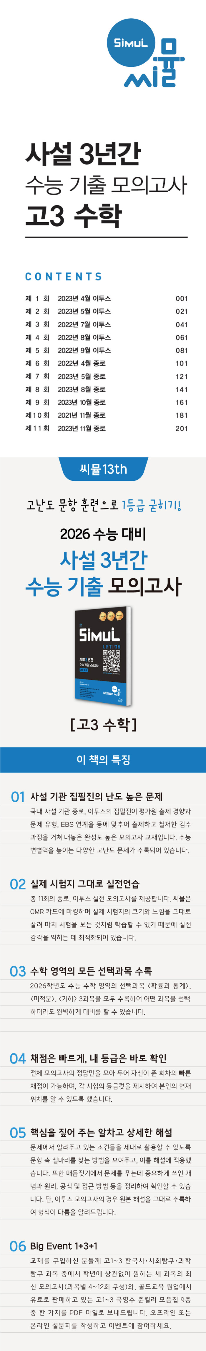 · 제목 : 씨뮬 13th 사설 3년간 수능 기출 모의고사 고3 수학 (2025년) (2026 수능대비)
