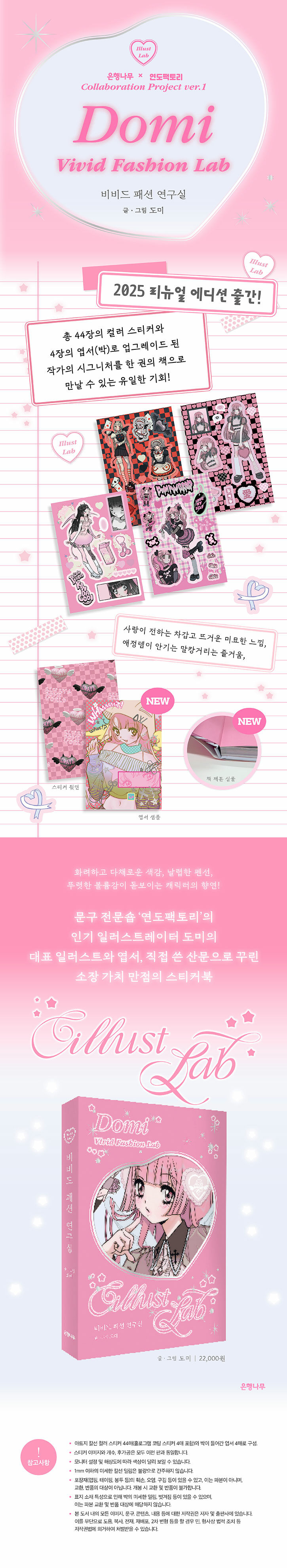 문구 전문숍 ‘연도팩토리’의 인기 일러스트레이터 도미(DOMI), 밀키하트(MilkyHeart), 아쿠(ACOO)의 대표 일러스트 스티커 44장을 엮은 스티커북 《일러스트랩 시리즈》 1탄 3종이 새로운 장정과 디자인으로 돌아온다.